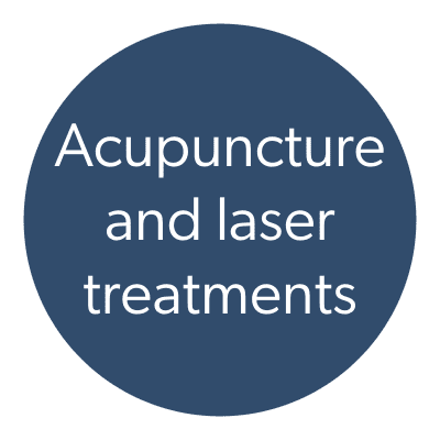 | In-person 60 minute consultation and assessment, including acupuncture or laser (£250) | In-person 30 minute consultation, including acupuncture or laser (£150) | Online 60 minute consultation including your vet and physio if desired (they may charge for this additionally) (£130) | Outpatient examinations include report provided to the referring veterinary practice and/or physiotherapists | Your primary vet retains responsibility for prescribing medications, and monitoring response to treatments. |