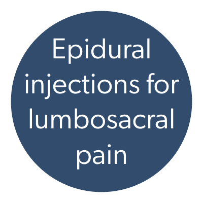 Low back pain related to nerve compression or inflammation can respond to epidural steroid injections performed under a short anaesthetic. Interventional treatments may be considered as part of a treatment approach where consevative management alone is insufficient to manage pain. Potential risks, uncertainties and alternative options are discussed as part of the consent process.
