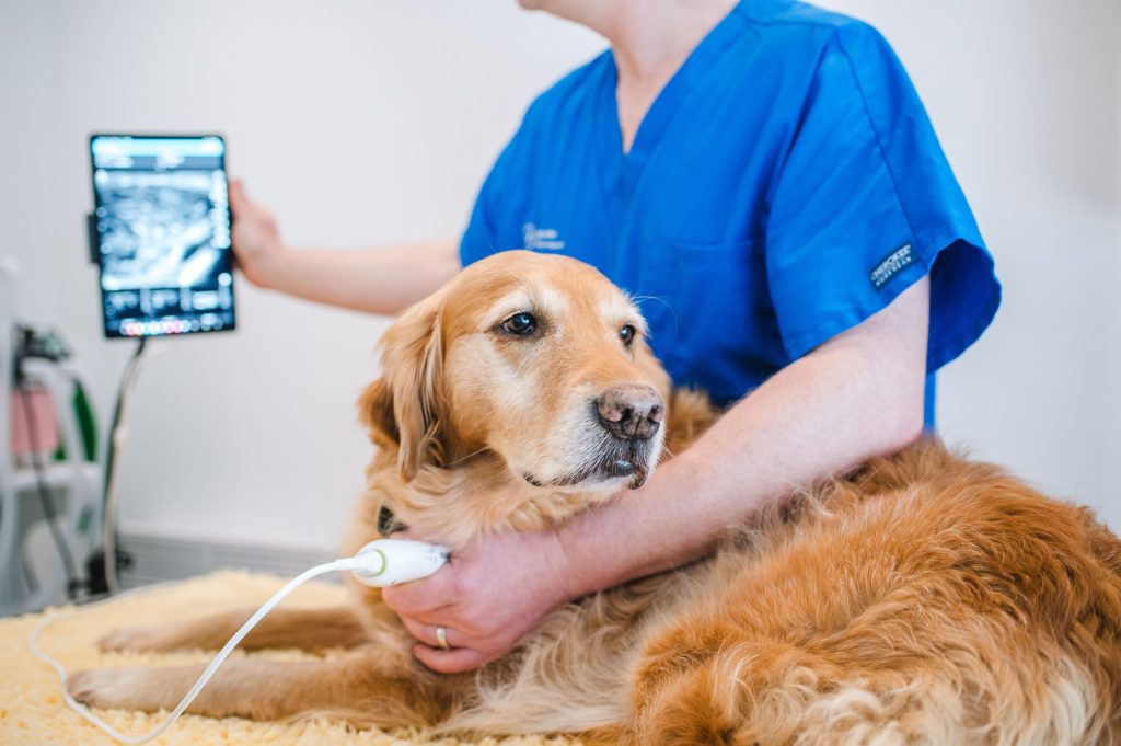 Ultrasound makes use of high frequency sound waves to offer a non-invasive method for examining soft tissues such as muscles and tendons. In many cases, pets can have an ultrasound while awake; however, sedation may be advised to allow a thorough assessment of deeper structures. We use careful patient monitoring throughout any sedation to ensure your pet’s safety. If your own vet refers your pet for an outpatient ultrasound , we will share a detailed report with them so they can continue to oversee your pet’s care.